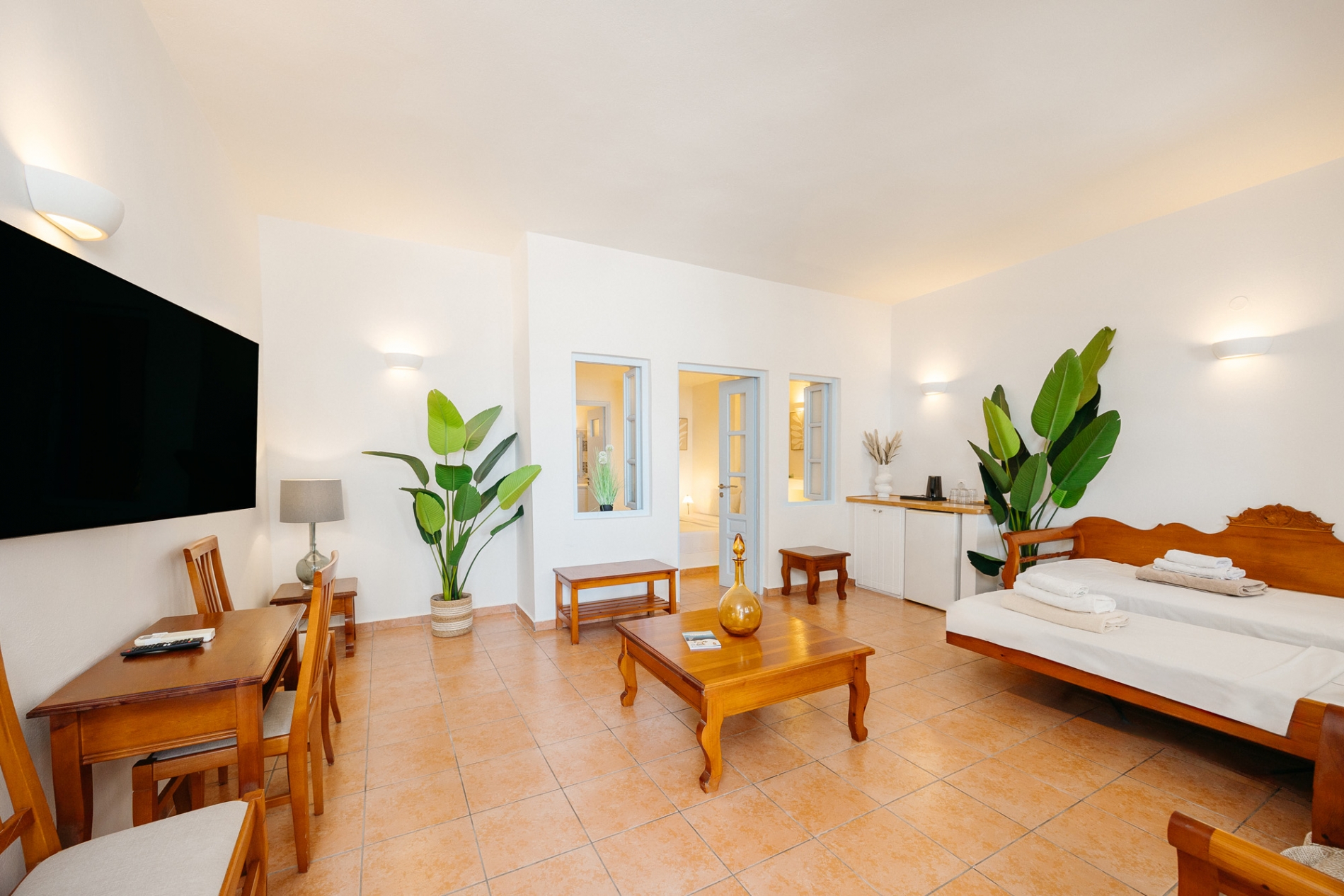 - Ψυγείο / Μίνι μπαρ (με ένα μπουκάλι νερό και ένα μπουκάλι κρασί)