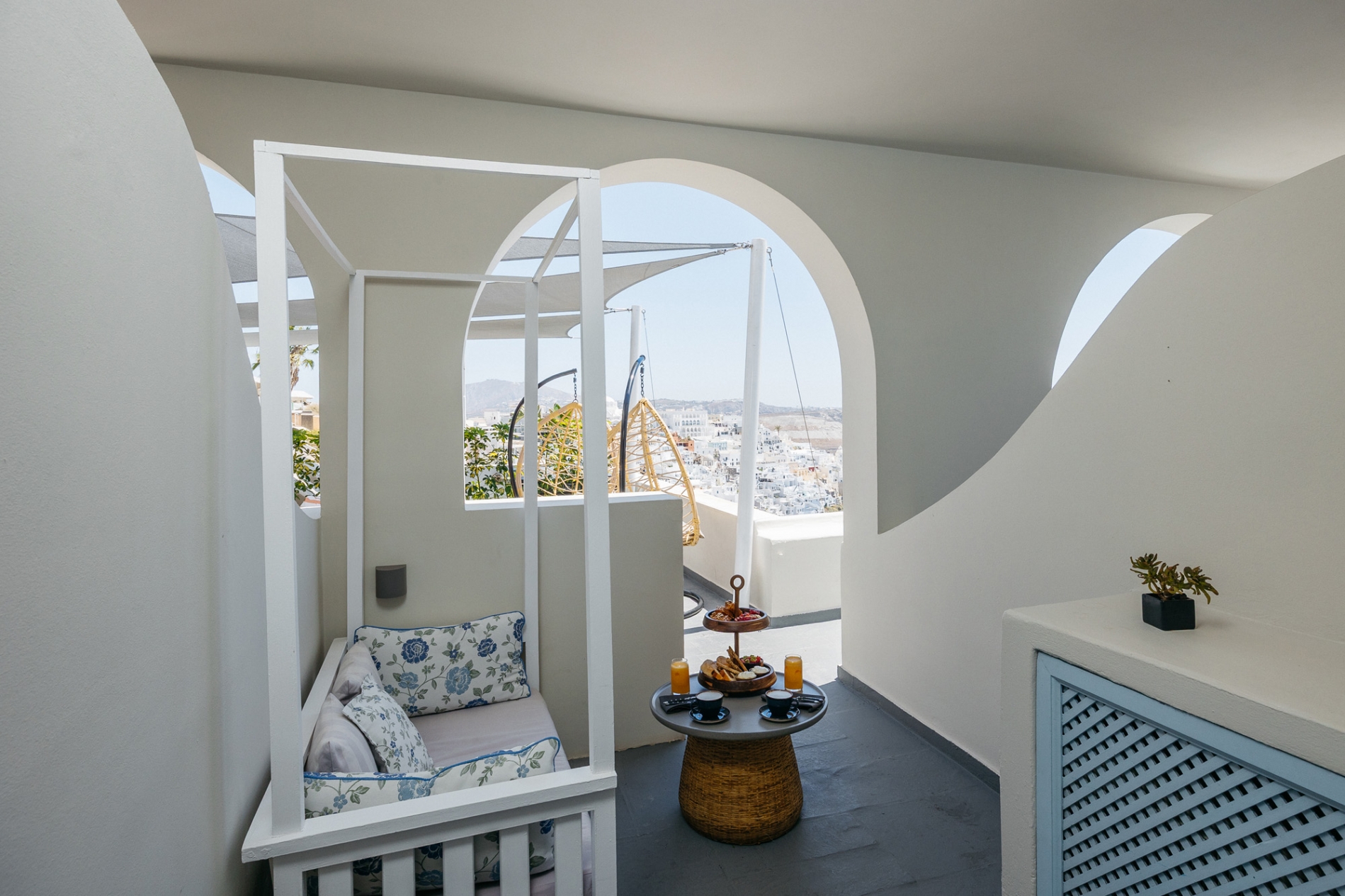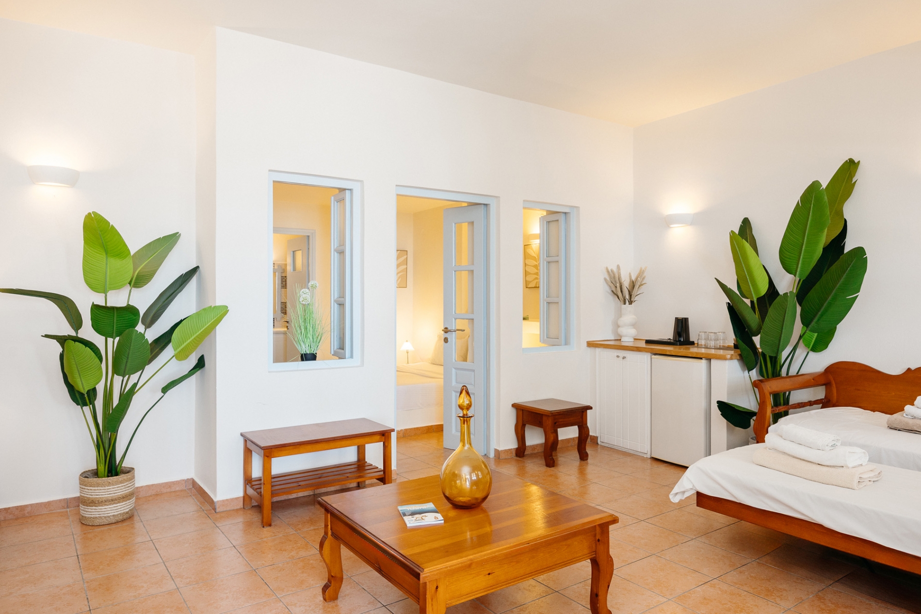 Μια οικογενειακή σουίτα, η οποία μπορεί να φιλοξενήσει μέχρι τέσσερα άτομα, με ένα υπνοδωμάτιο (διπλό κρεβάτι),μεγάλο και άνετο μπάνιο, ευρύχωρο καθιστικό με καναπέ-κρεβάτι και βεράντα με υπέροχη θέα στην Καλντέρα και το βαθύ μπλε του Αιγαίου.