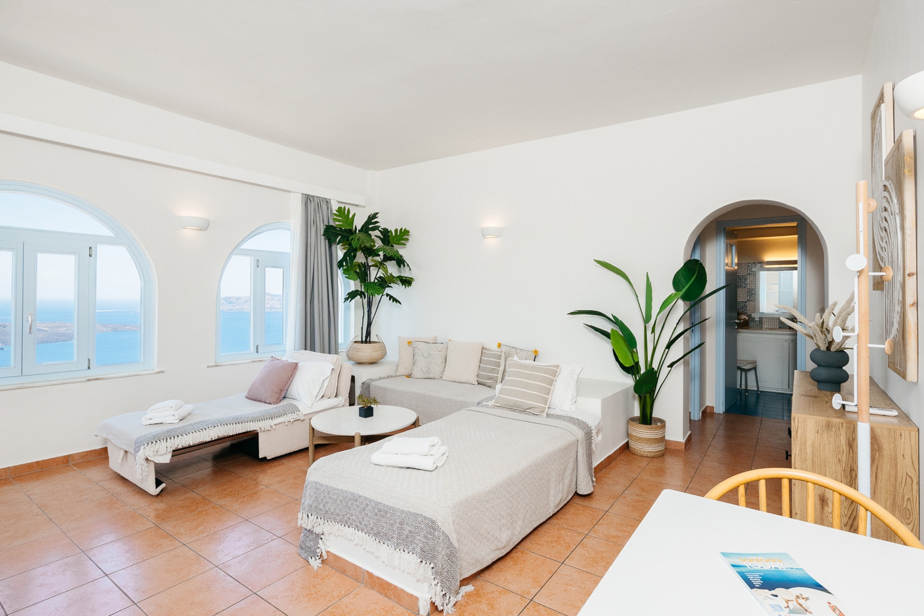Η Σουίτα Superior αποτελείται από ένα υπνοδωμάτιο με διπλό κρεβάτι, ένα ευρύχωρο σαλόνι με θέα στο ηφαίστειο και το ηλιοβασίλεμα,με άνετο μπάνιο και βεράντα με υπέροχη θέα στην Καλντέρα και το βαθύ μπλε του Αιγαίου
